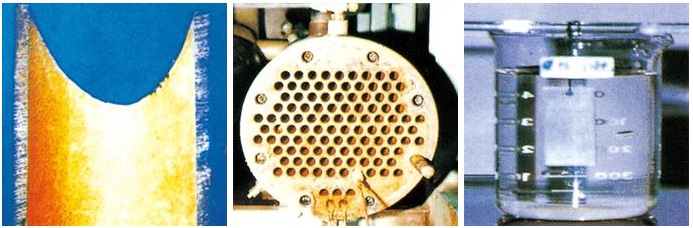 中央空調循環水系統的日常水質穩定處理是相當重要的,不僅可延長管線和設備的使用壽命,即水處理的效果是使管線和設備達到設計的使用壽命;而且能節約大量的電能及水資源;還可防止中央空調水系統結垢、腐蝕,菌藻附著,保證系統設備經濟而安全運行。當然還能改善風機盤管系統運行狀況,創造穩定的舒適工作和生活環境。 不作任何水處理下的管網和浸片情況